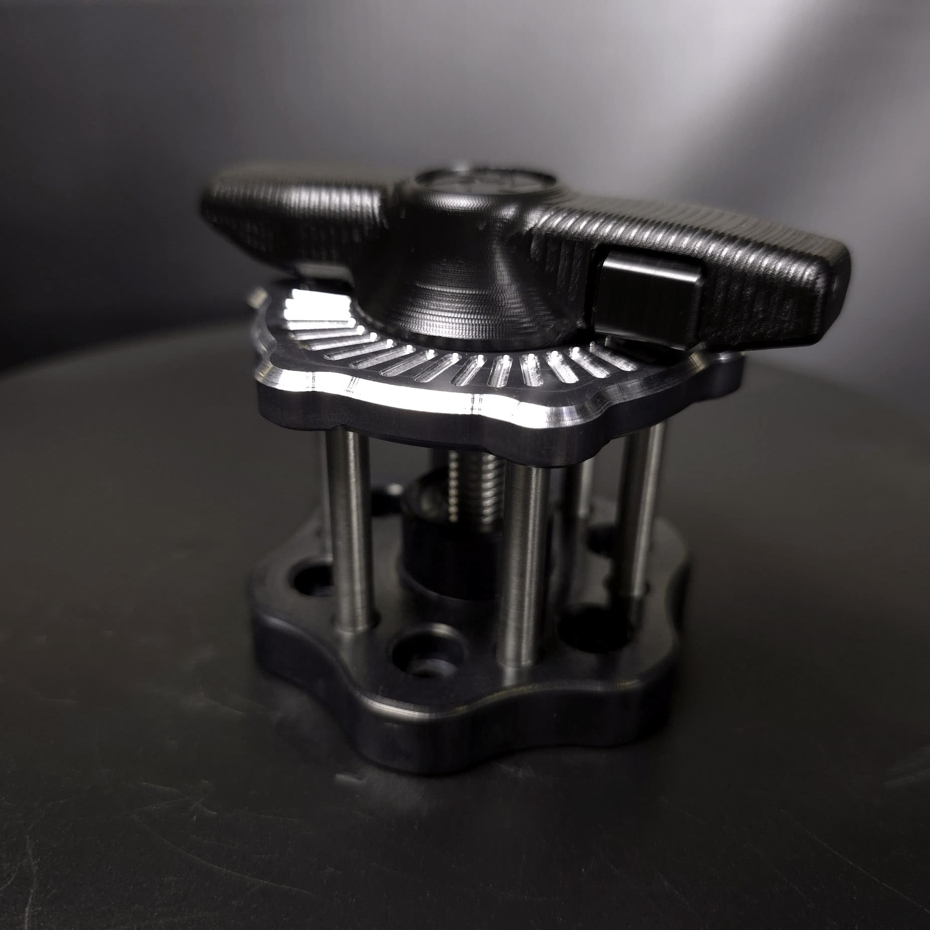 Our ratchet plates go through a labor-intensive, three-stage finishing process. They are machined, anodized, and then machined again to create the signature two-tone finish with shiny edges and ratchet teeth.